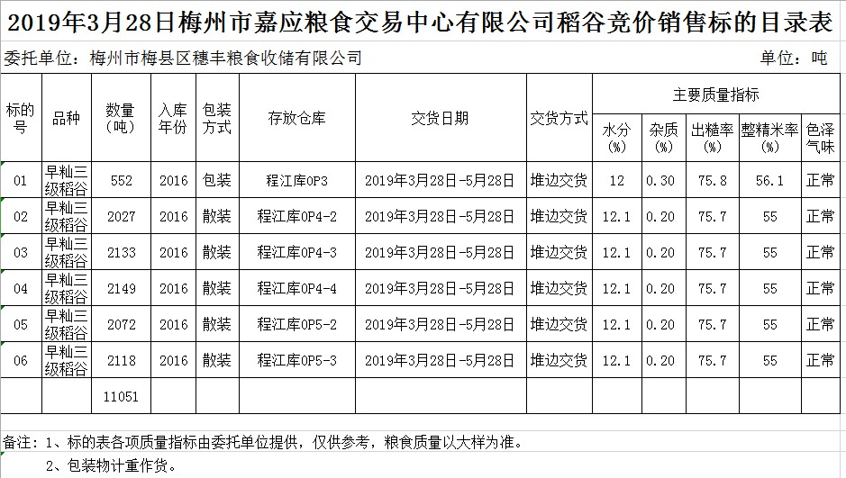 交易時(shí)間和地點(diǎn):2019年3月28日(星期四)上午10時(shí)。廣東省梅州市彬芳大道南161號(hào)梅州市糧食交易中心3樓。