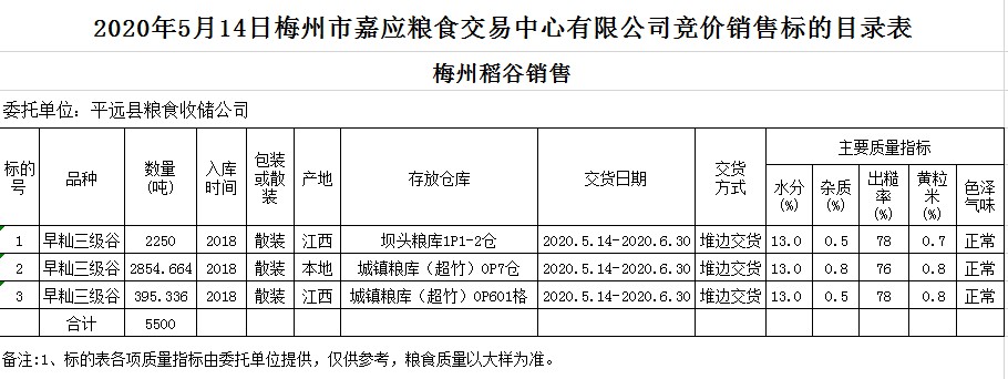 交易時(shí)間和地點(diǎn):2020年5月14日(星期四)上午10時(shí)。廣東省梅州市彬芳大道南161號(hào)梅州市糧食交易中心3樓。